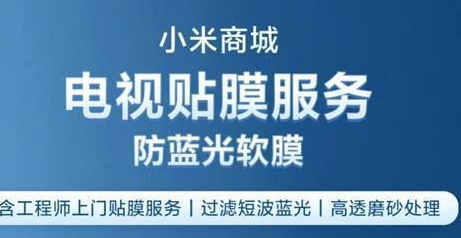 12月7日,小米服務推出“防藍光”電視貼膜服務,由于膜片尺寸固定,因此僅支持小米55英寸電視,防藍光軟膜299元,含工程師上門貼膜服務、過濾短波藍光、高透膜砂處理。