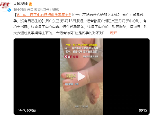 - 月子中心竟提供代孕服務 廣州市衛健委回復來了