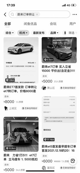 “我本來就是蔚來車主,正打算再購入一輛,但一直在EC6和ET5之間糾結。聽說5月10日EC6要漲價1萬元,我一著急就在5月9日先下了EC6訂單,后來還是決定等ET5,于是就想把手里的訂單賣了。”陳先生稱自己的訂單花費了2000元,現在打算3000元出,只為賺點零花錢。此外,還有部分車主由于提車周期過長而選擇拋售訂單,定價也比較“佛系”,最搶手的訂單往往來自于這些個人賣家。