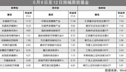 wind數據顯示,5月6日至5月12日,502只普通股票型基金的平均收益率為0.85%。其中,有309只基金實現正向收益,占比超六成。同時,有8只基金跌超5%。