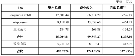 重組前的一個會計年度(即2017年),致歐科技(當時未股改)資產總額為5,211.12萬元,營業收入為8,019.43萬元,利潤總額為412.92萬元。被收購的三家老公司資產總額合計為25,704.81萬元,營業收入合計為99,543.27萬元,利潤總額合計為-1,395.04萬元。被收購資產對致歐科技影響較大,且利潤總額均存在虧損。