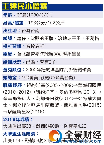 王建民去年加盟皇家,并在相隔959天后重返大聯盟,最后出賽38場,戰績6勝0敗,防御率4.22,東山再起的故事,再次感動臺灣球迷。今年球季開打后,王建民將滿37歲,目前他仍在尋找新東家,至于,2017年王建民的整體運勢如何?《蘋果》情商星座專家鄭嘉琳、姓名學老師江紘均、塔羅諮商師 Nina師仔細盤算。