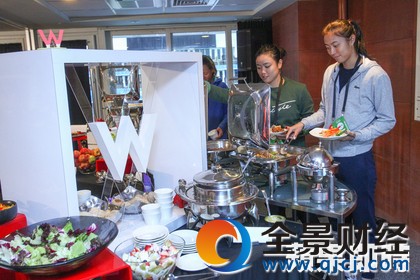 WTA臺灣公開賽今年邁進第二年,今年從高雄移至臺北小巨蛋舉行后,球員待遇和規格都升級到史上最高規格,特別是耗資500萬臺幣,由贊助商臺北W飯店協助打造的健康球員餐廳,及在球場上少見設置的沙發椅休息區,讓參賽球員都大感驚艷。去年在高雄的球場餐飲,由于口味偏南部口味,不少外國球星反映,吃得較不習慣。今年大會特別邀請了由臺北W飯店美籍主廚馬喬許(Joshua Marshall)領軍的餐飲團隊,負責小巨蛋球場頂樓的球員餐廳飲食,讓自世界各地前來的球員,不但吃得安心,也吃得開心。雖然現職為專業主廚,但馬喬許曾是美式足球和田徑選手,他特別清楚運動員的飲食需求,能為球員設計出他們專屬的健康菜單。馬喬許表示,這次為WTA Taiwan Open球員所擬訂的餐點,共分三套輪流替換,讓球員每天都能享用不一樣的餐點,也不容易吃膩。馬喬許說:「我設計的菜單以健康為主軸,主要是蛋白質、雞肉或魚肉,以便能在短時間內為球員補充營養,而且盡量不用高熱量的奶油,以鮮榨的橄欖油為主,餐點以輕食沙拉和熟食為主,也有現點現做的pasta bar。現場還提供部份無麩質的麵包和麵條,讓強調無麩質飲食的球員,都有餐點可選擇。」不少中外球員在賽后訪問時,都盛讚大會提供的飲食。地主臺灣好手詹謹瑋就說:「本來第一天我還不知道有這幺讚的球員餐廳,聽老爸去吃過后都說讚,上樓吃后才發現,真的超棒,可惜前一天還不知道才沒有上去用餐,只要想起來就覺得好可惜。」不只餐飲用心,大會也特別將比賽場上的球員休息區一般座椅、改成沙發座椅,詹謹瑋驚喜于大會的用心,她說:「這沙發坐起來超舒服的,腳的角度剛剛好,但比賽時有點擔心,因為實在太舒服了,害怕對手申請上廁所暫停時,我怕我會一坐就不想起來、書服到睡著,這樣就不好了。」